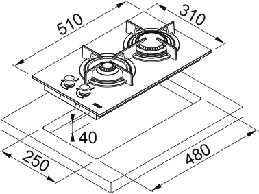 FRANKE (106.0374.278) FHCR 302 2G HE BK C - Estufa modulo a gas cristal negro
